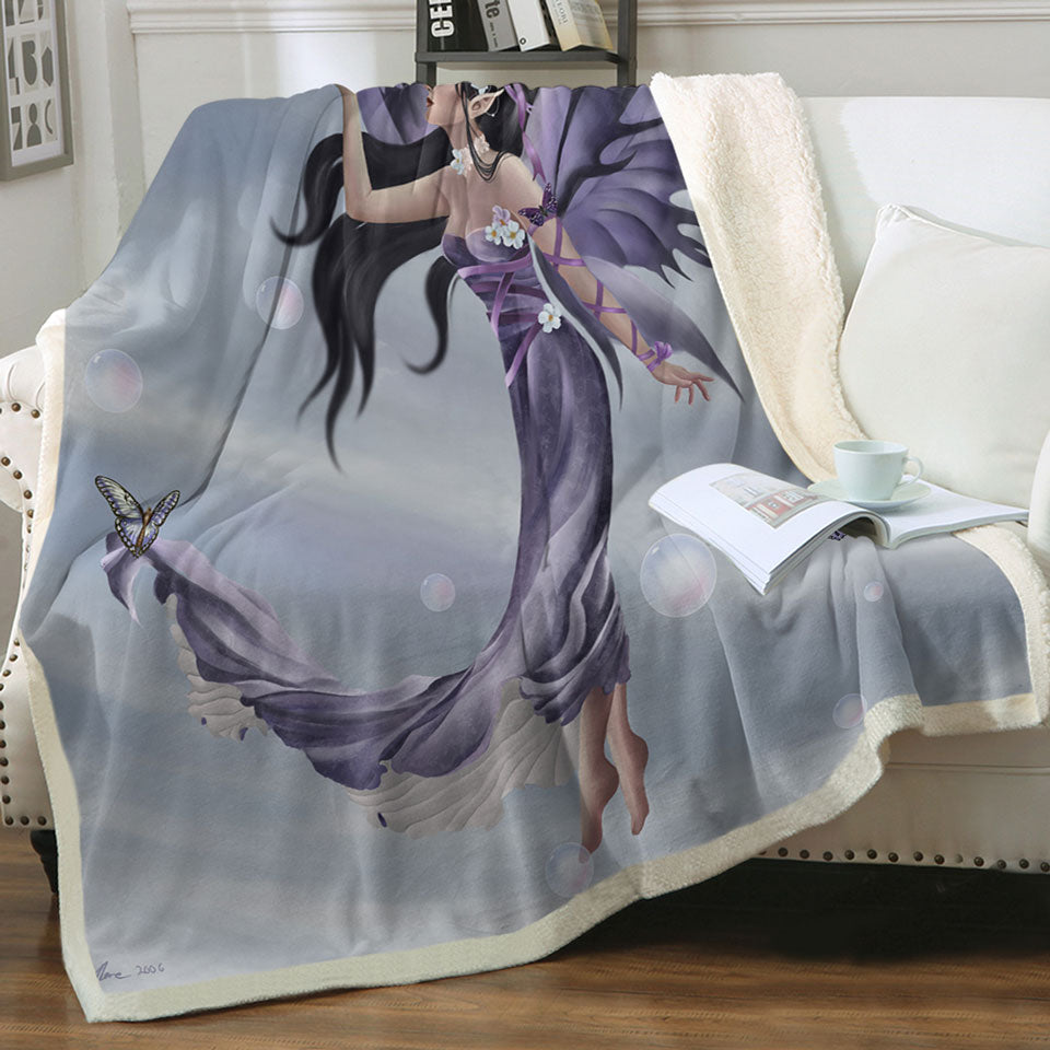 Fantasy Art the Purple Dream Catcher Fairy Throw Blanket