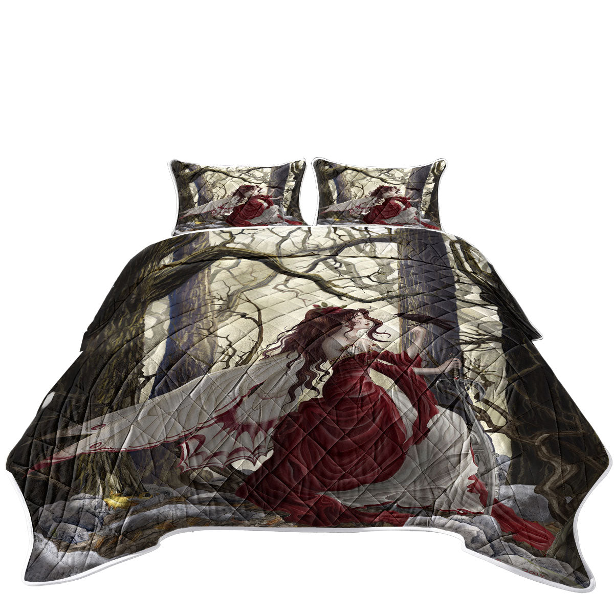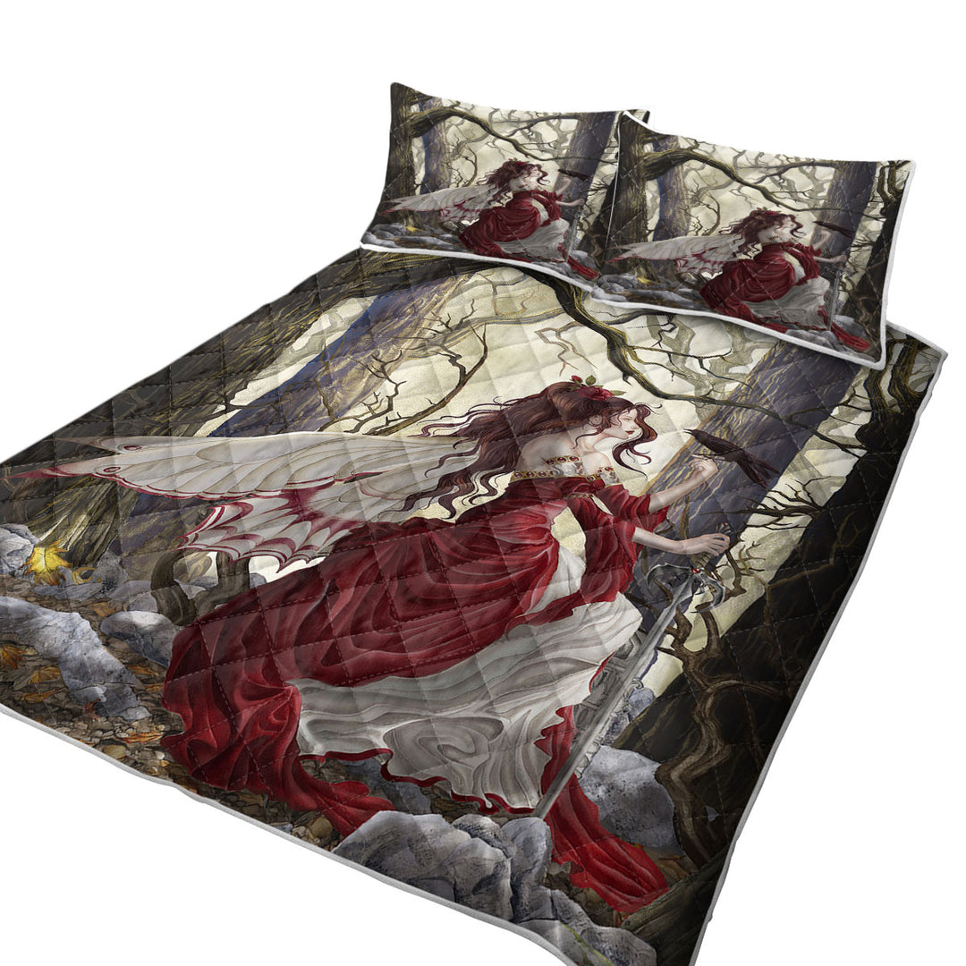 Fantasy Art the Red Fairy and Her Crow Quilt