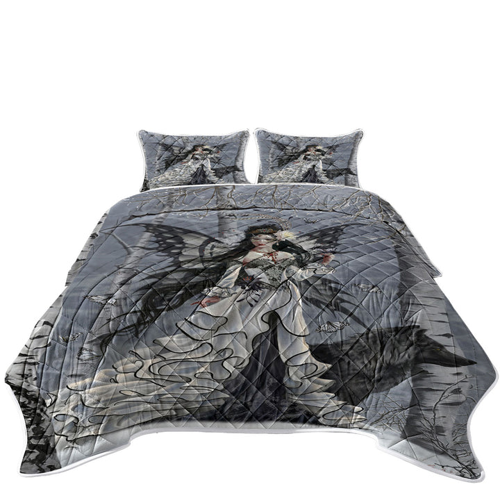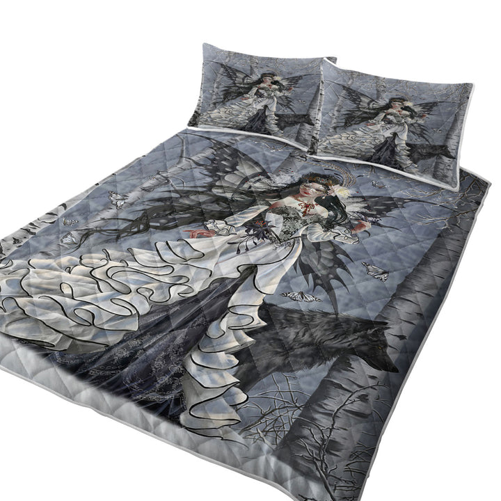 Fantasy Art Winter Fairy and Her Wolf Quilt