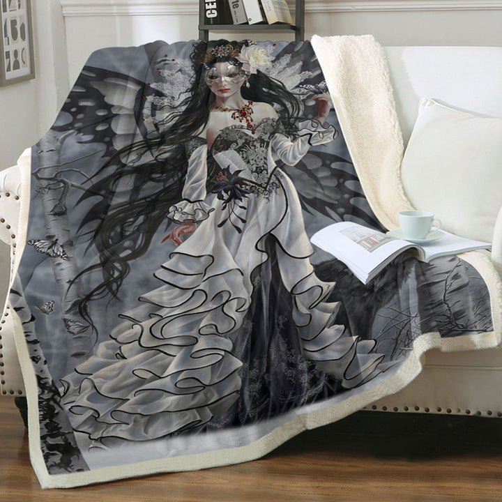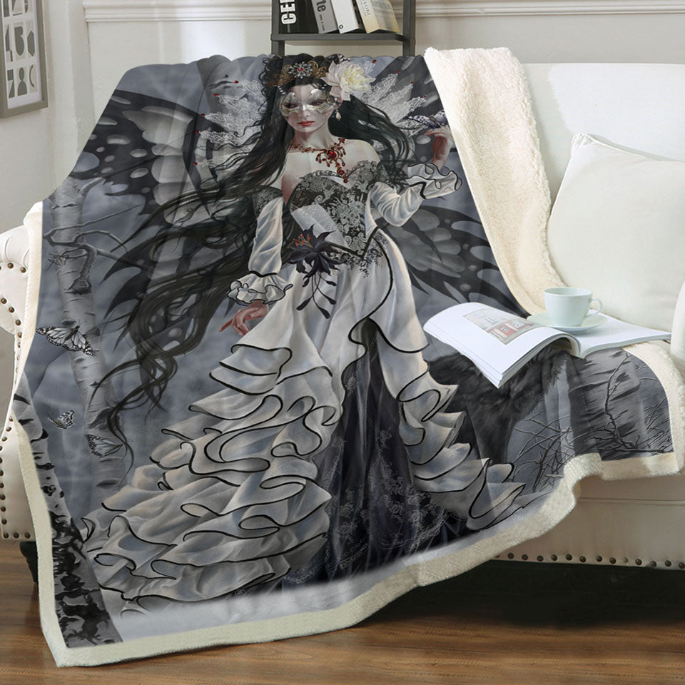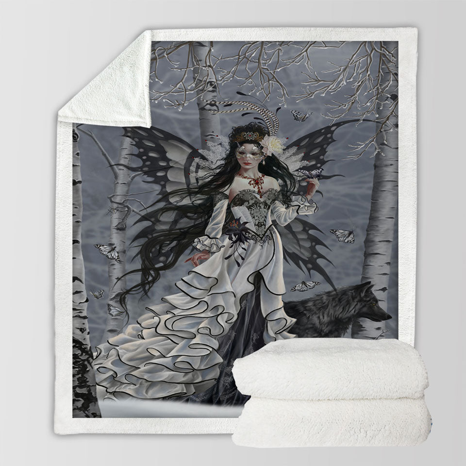 Fantasy Art Winter Fairy and Her Wolf Throw Blanket