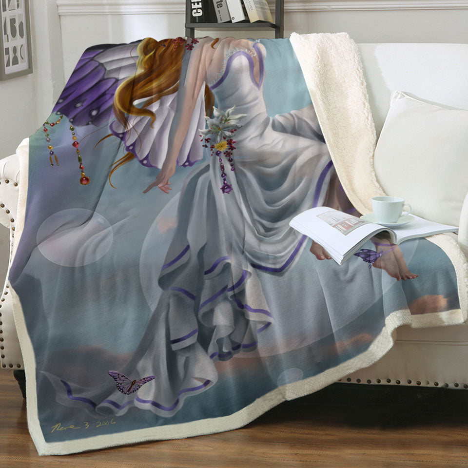 Fantasy Artwork Charming Rainbow Fairy Throw Blanket