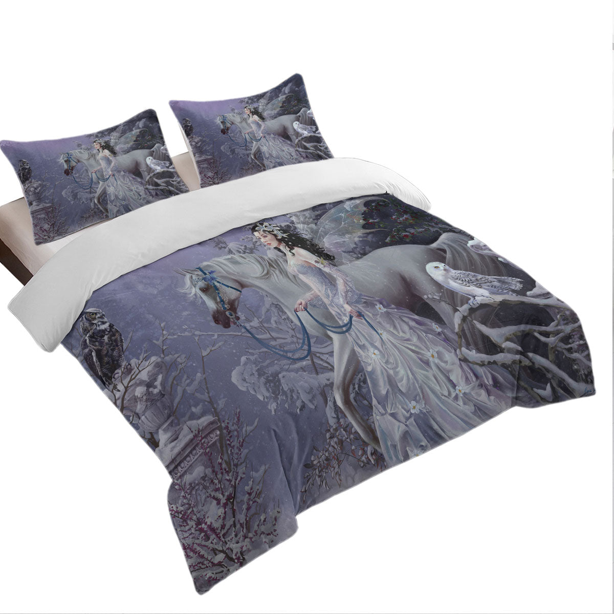 Fantasy Horse Owls and the Winter Wings Fairy Duvet Cover