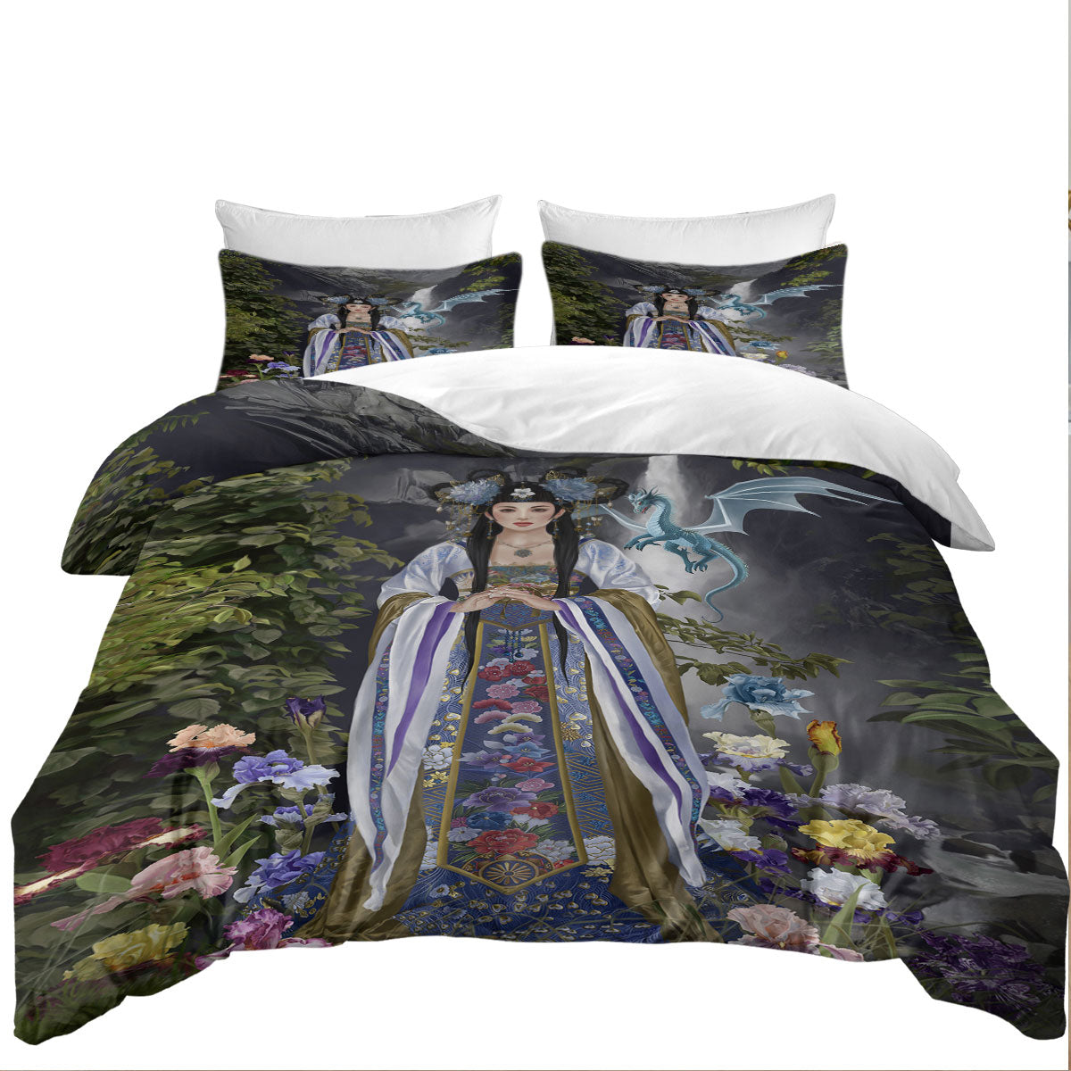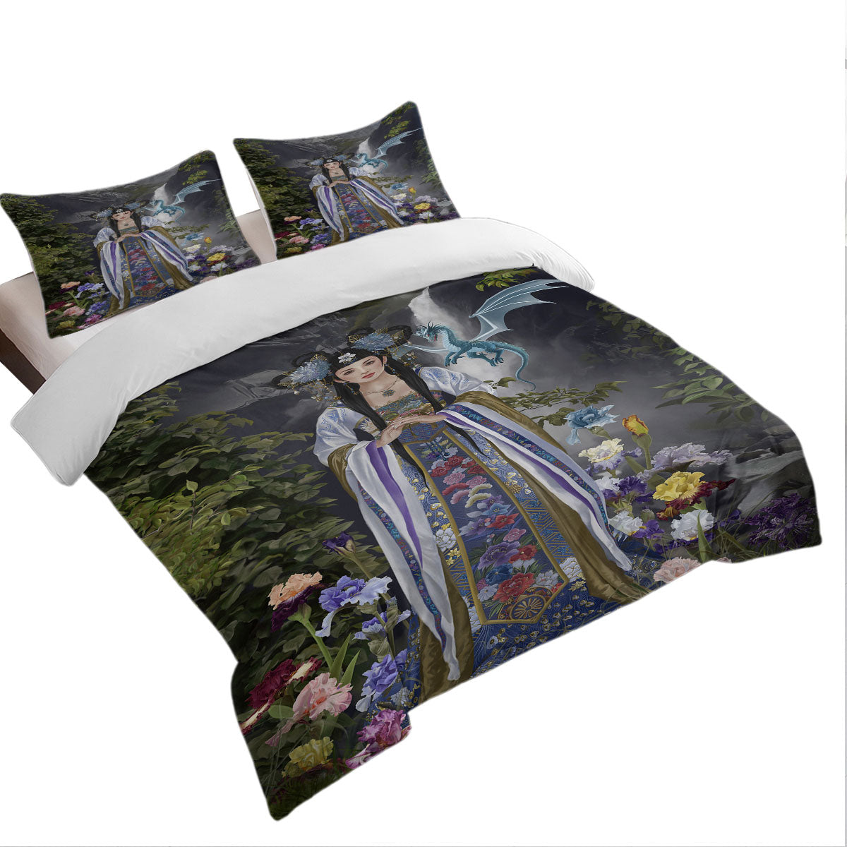 Japanese Flower Garden and Dragon Princess Duvet Cover