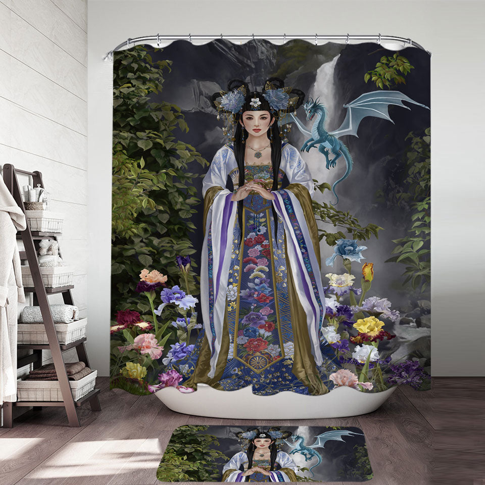 Japanese Flower Garden and Dragon Princess Shower Curtain