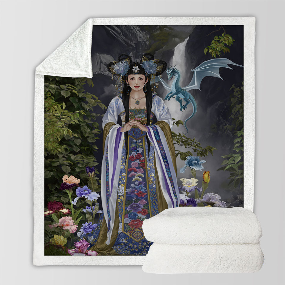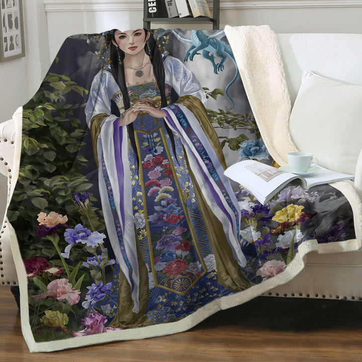 Japanese Flower Garden and Dragon Princess Throw Blanket