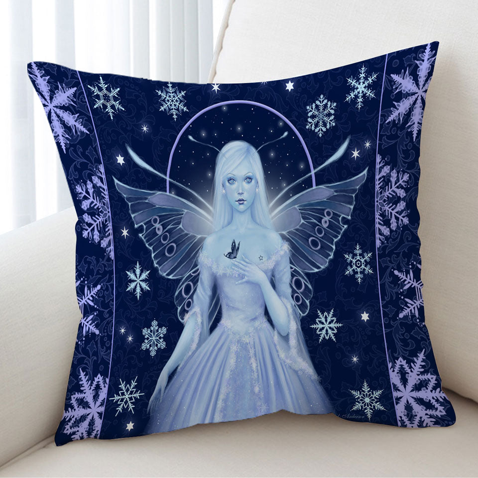 Fantasy Art Snowflakes and Stunning Snow Fairy Throw Pillow