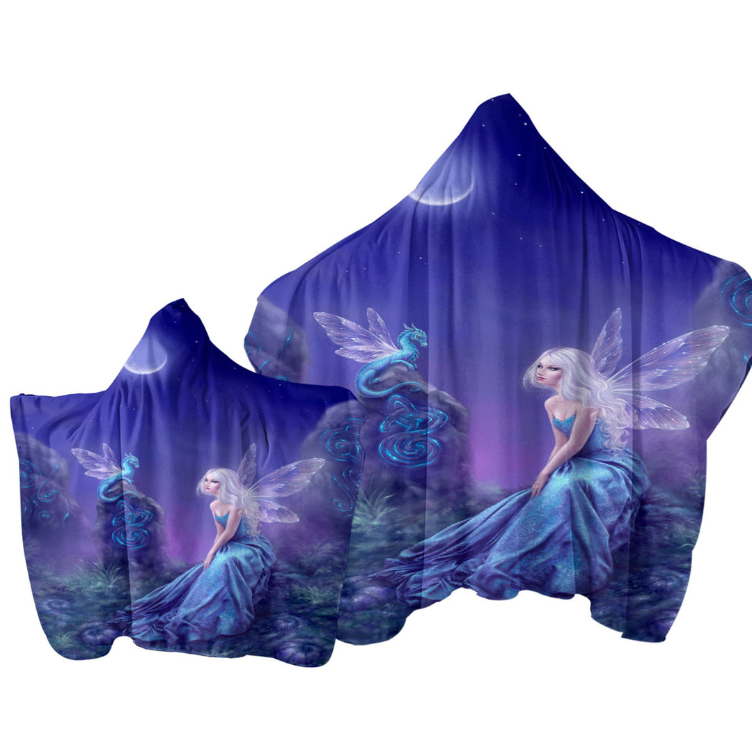Fantasy Art the Moon Light Blue Dragon Fairy Towel with Hood