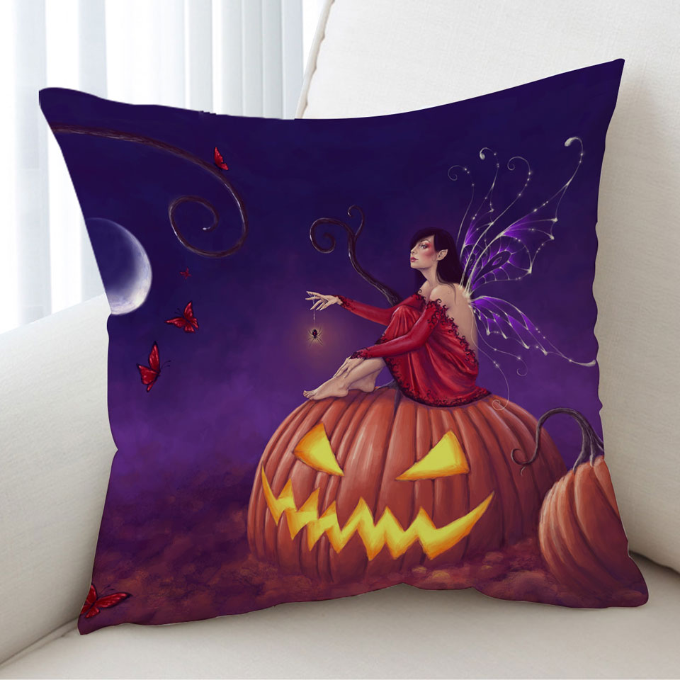 Fantasy Halloween Witch Fairy and Scary Pumpkins Throw Pillow