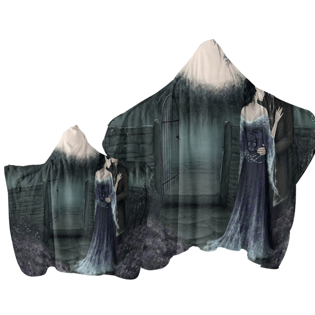 Gothic Fantasy Art Dark Garden of Two Elf Lovers Towel with Hood