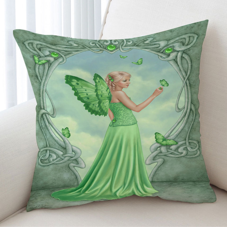 Butterflies and Green Peridot Butterfly Girl Throw Pillow