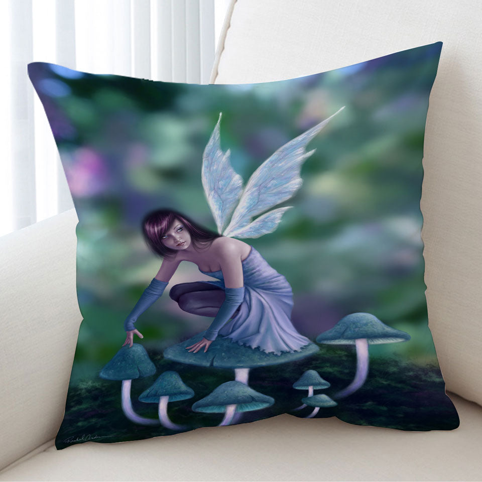 Fantasy Art Periwinkle Mushroom Fairy Throw Pillow