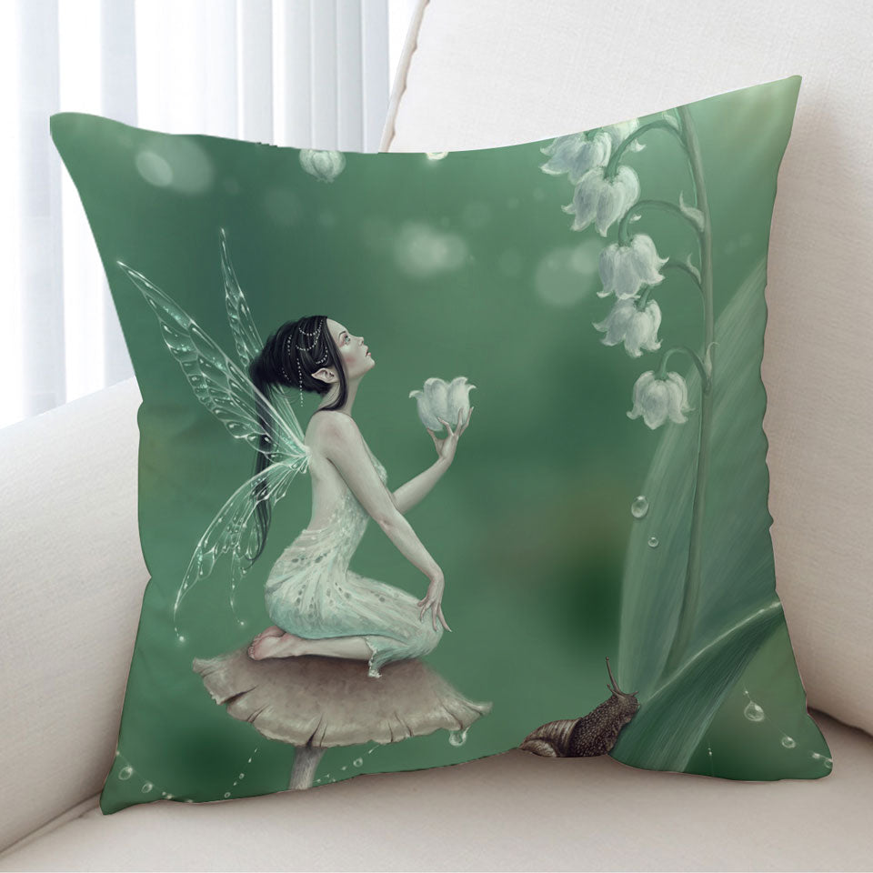Snail and Cute Little Fairy the Lily of the Valley Throw Pillow