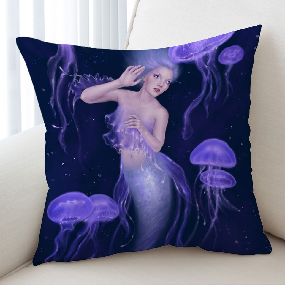 Underwater Art Purple Jellyfish and Mermaid Throw Pillow