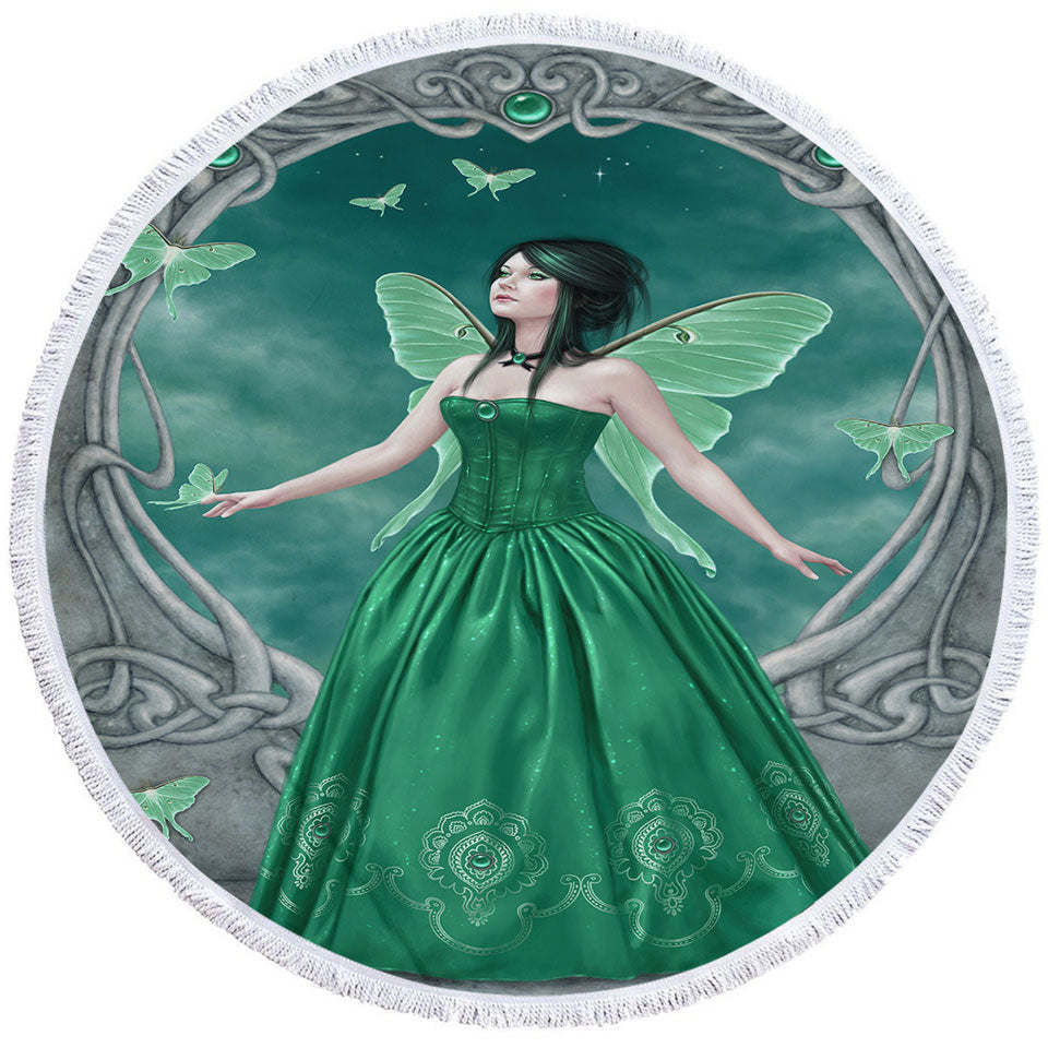 Butterflies and Green Emerald Butterfly Girl Round Beach Towel