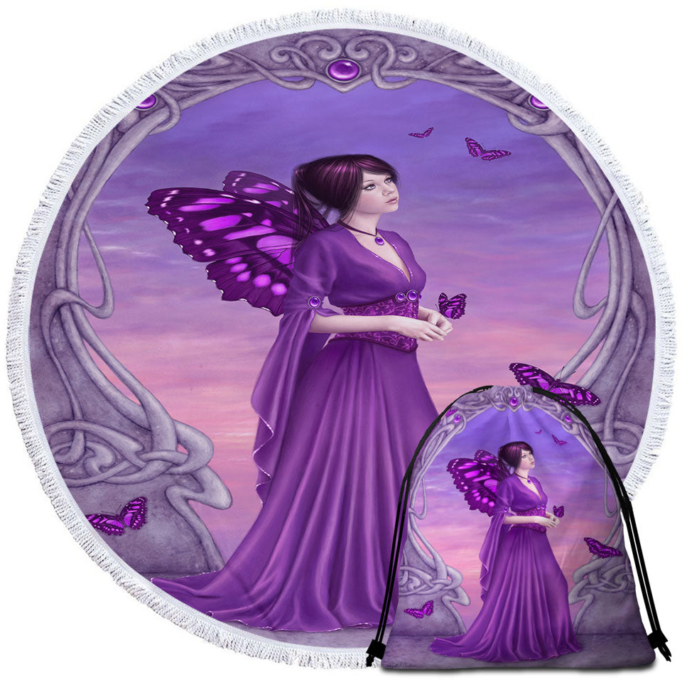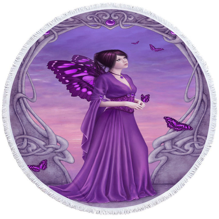 Butterflies and Purple Amethyst Butterfly Girl Round Beach Towel