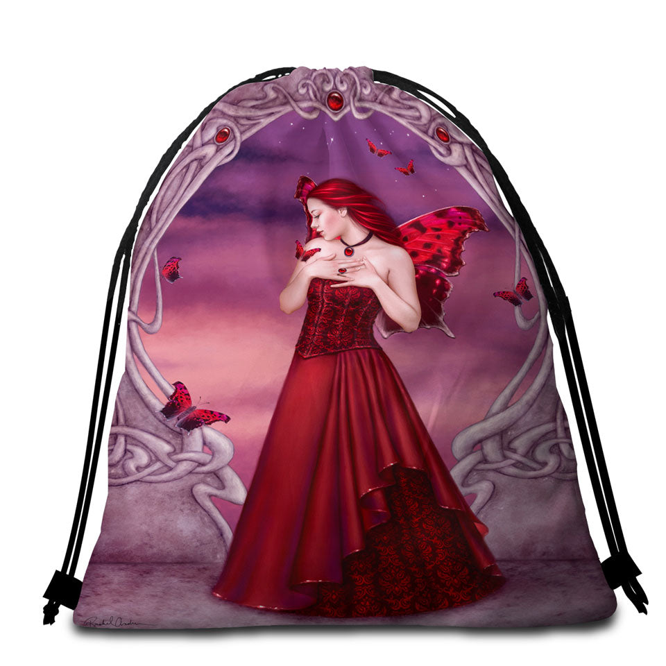 Butterflies and Red Garnet Butterfly Girl Round Beach Towel