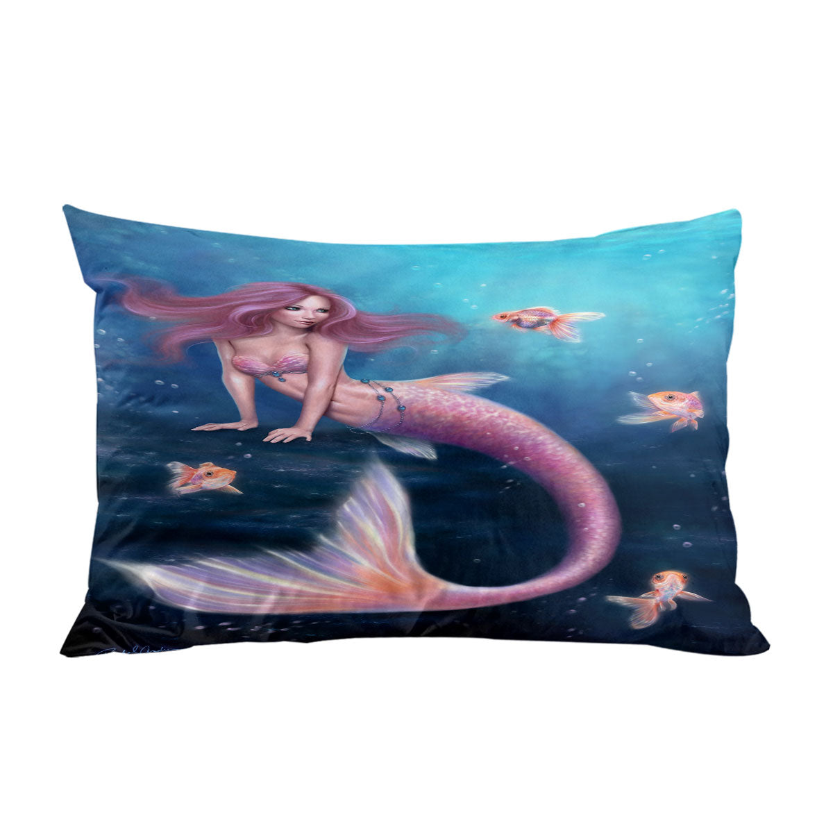 Fantasy Art Gold Fish and Beautiful Pinkish Mermaid Duvet Cover