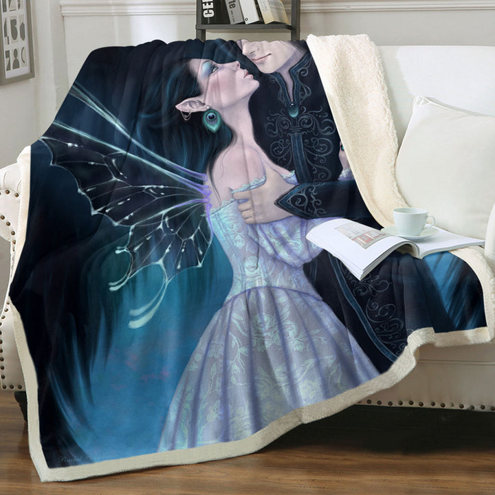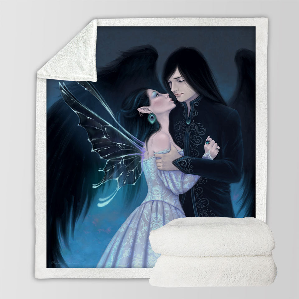Fantasy Art Lovers Dark Angel and Sapphire Fairy Throw Blanket