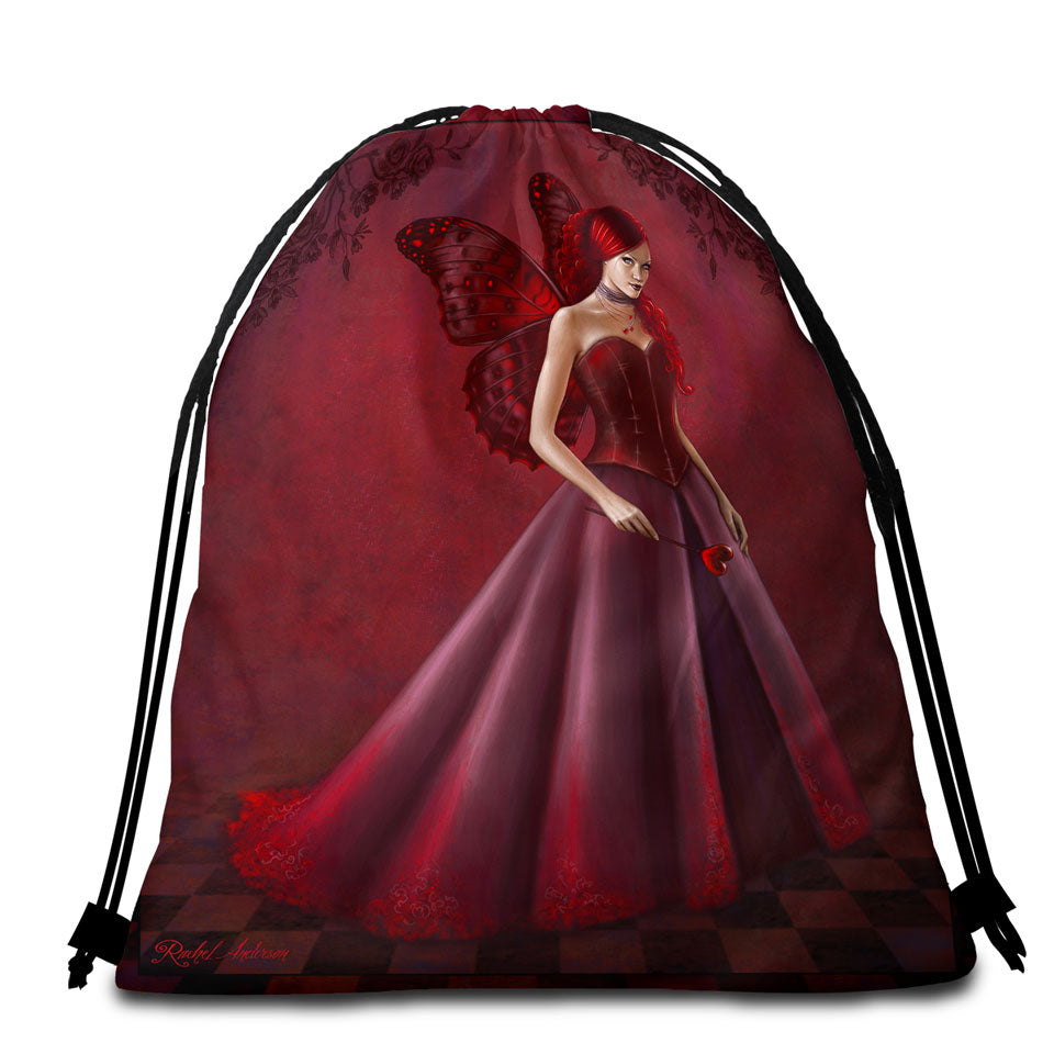 Queen of Hearts Red Art Beautiful Woman Round Beach Towel