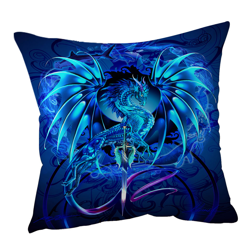 Blue Fantasy Weapon Dragon Sword Sea Blade Throw Pillow