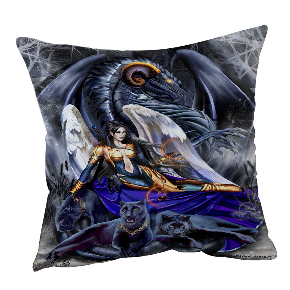 Cool Fantasy Warrior Angel Dragon and Panthers Throw Pillow