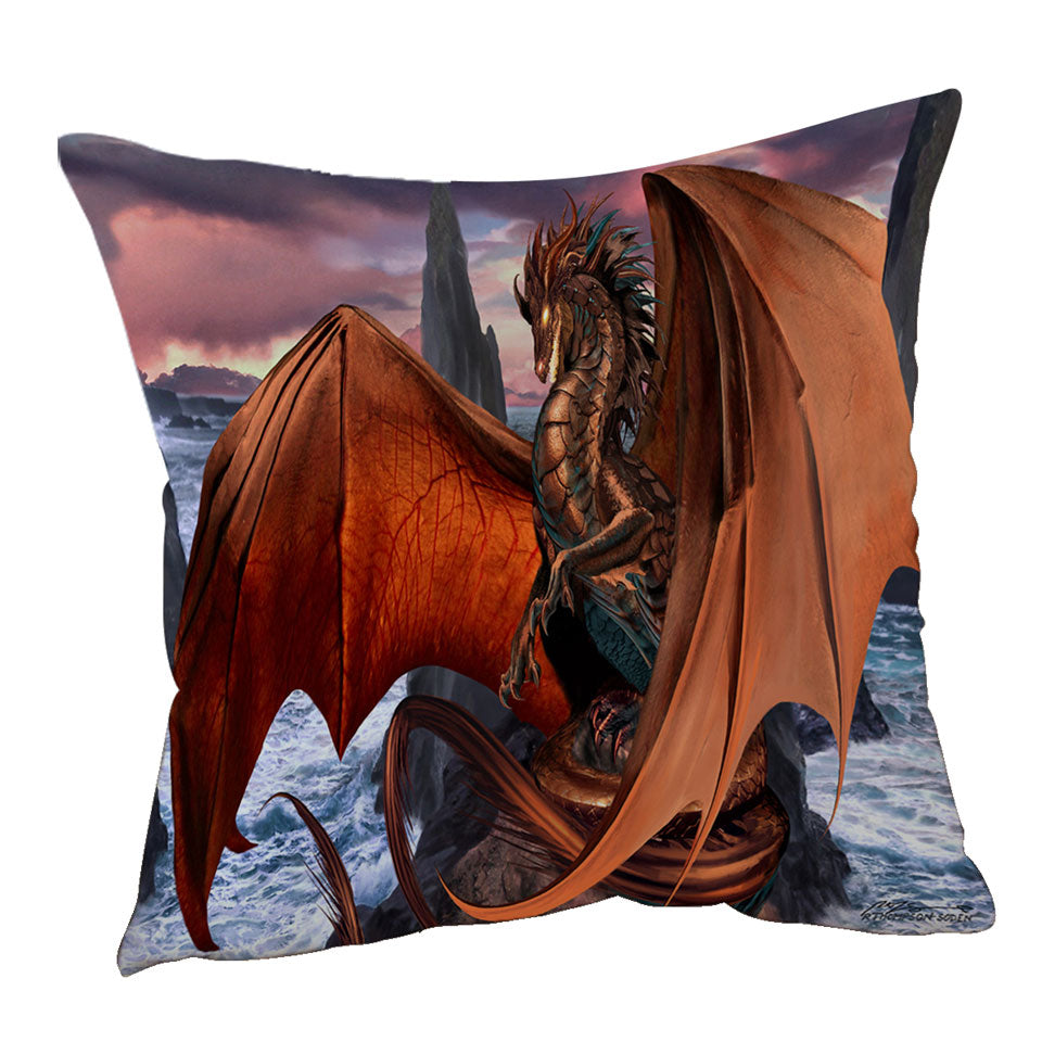Coppervein Fantasy Creature Ocean Rocks Dragon Throw Pillow