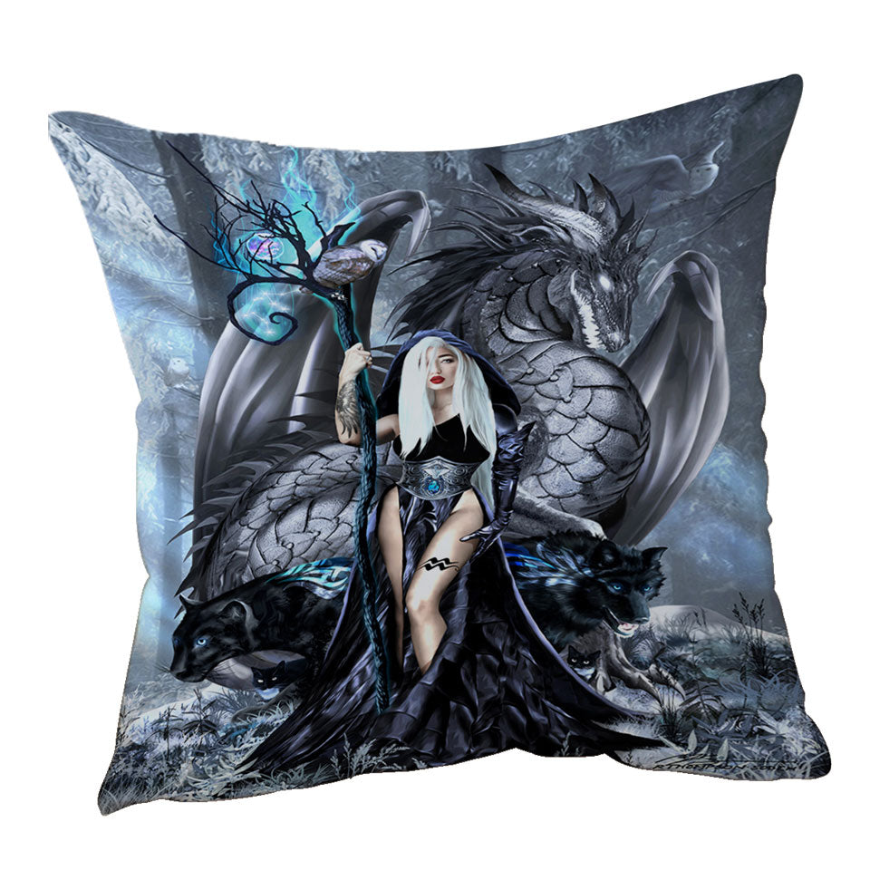 Fantasy Digital Art Aquarius Witch and Dragon Throw Pillow