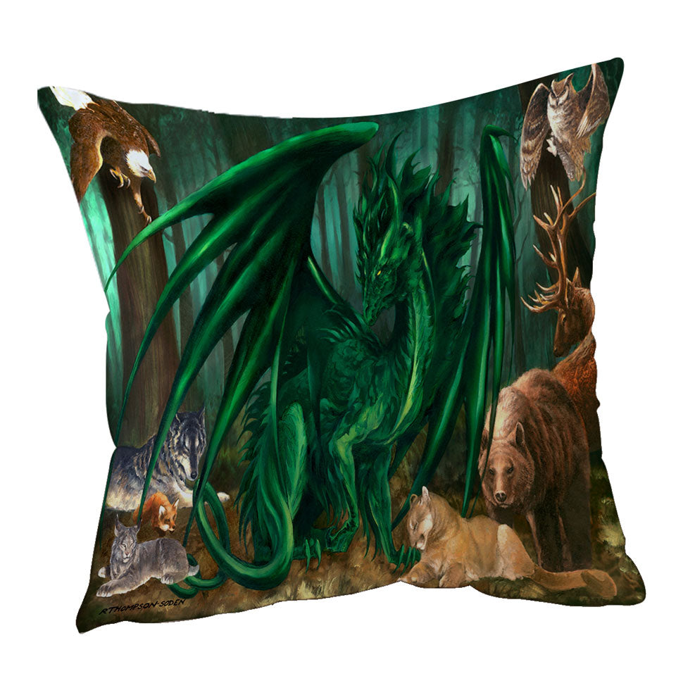 Lord of the Forest Animals the Green Dragon Throw Pillow