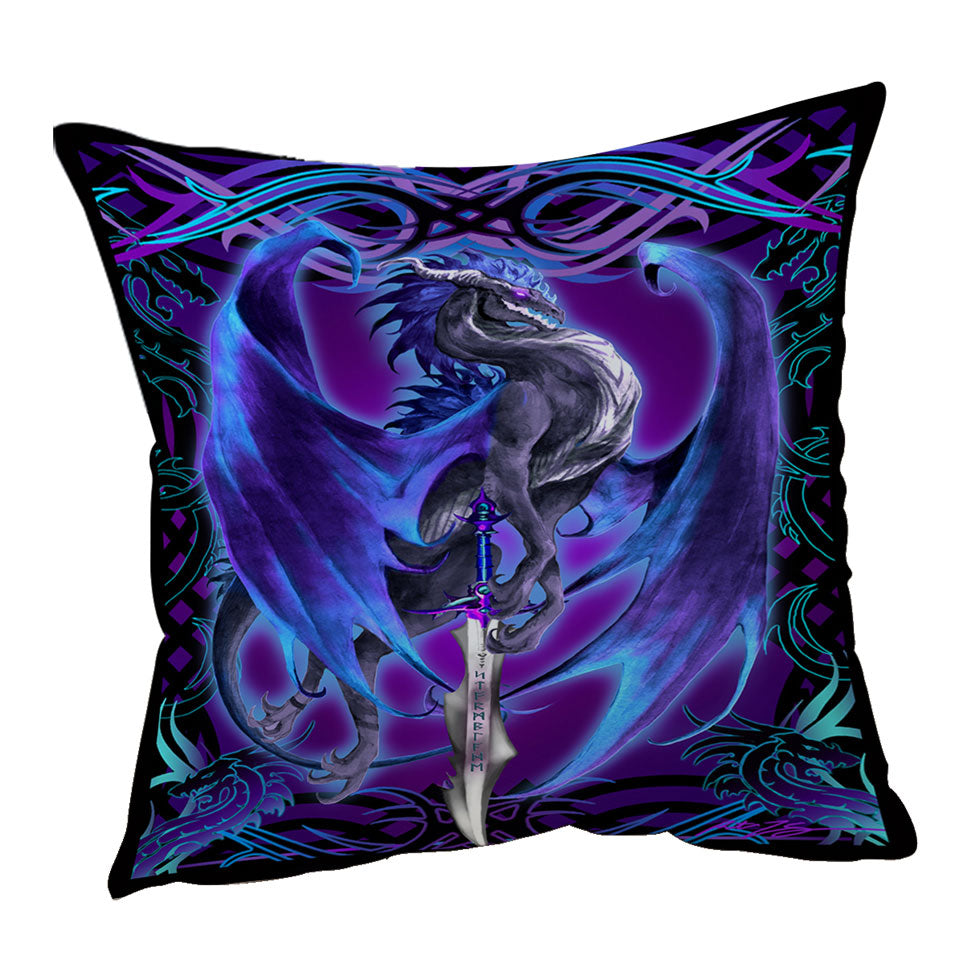 Cool Fantasy Weapon Purple Dragon Nether Blade Throw Pillow