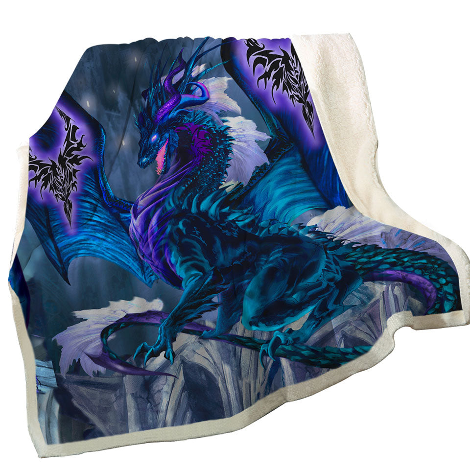 Blue Dragon of Fate Fantasy Creatures Throw Blanket