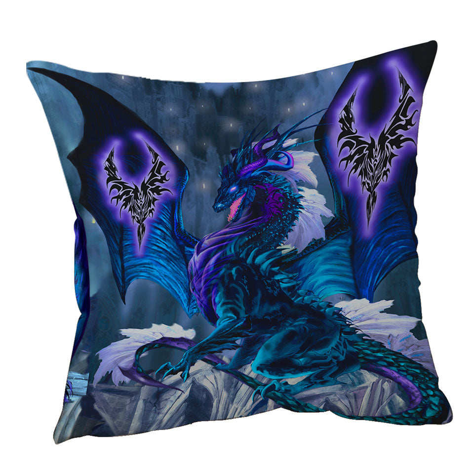 Blue Dragon of Fate Fantasy Creatures Throw Pillow