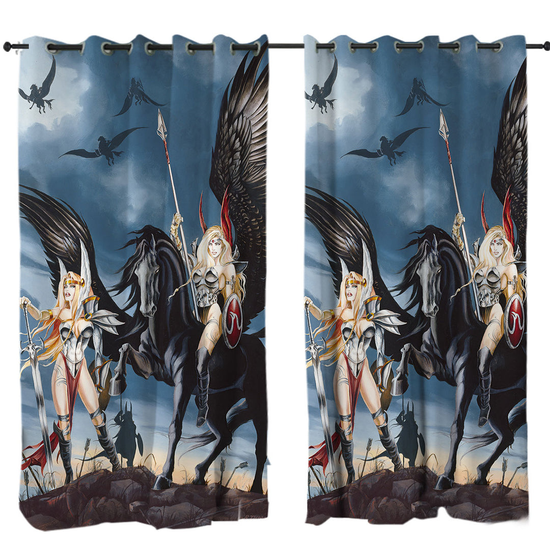 Cool Fantasy Art Pegasus Women Warriors Curtain