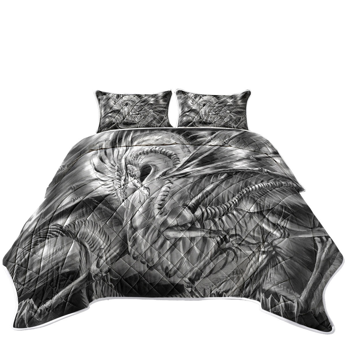 Cool Fantasy Drawing Dracolich Dragon Skeleton Quilt
