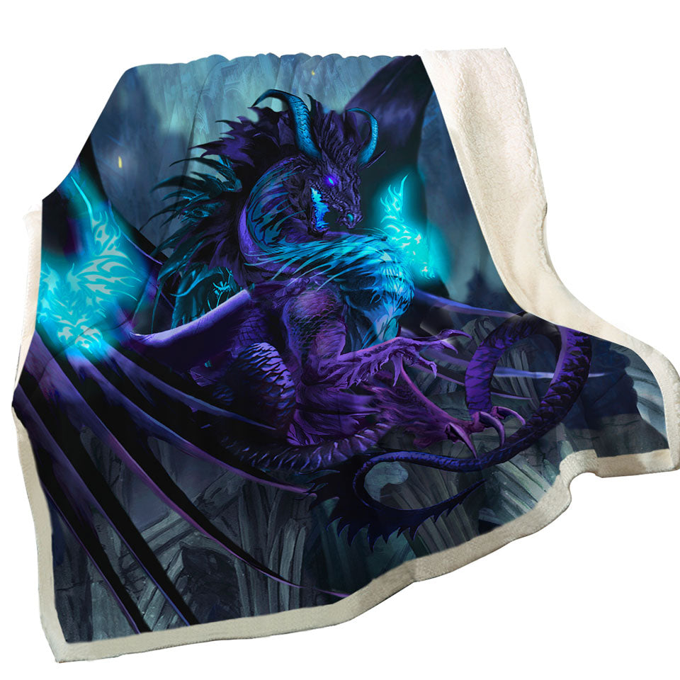 Cool Fantasy Purple Dragon of Fate Throw Blanket
