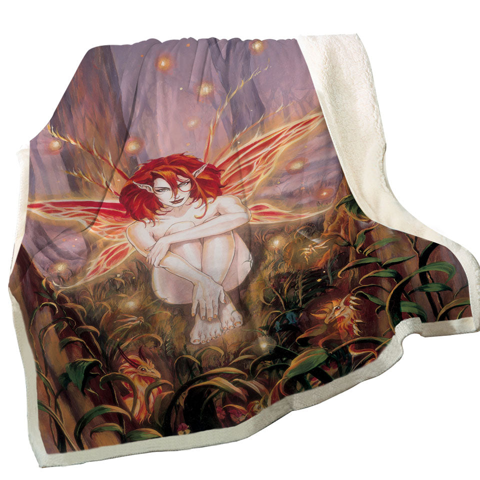 Fairytale Magical Forest Ember Fairy Throw Blanket