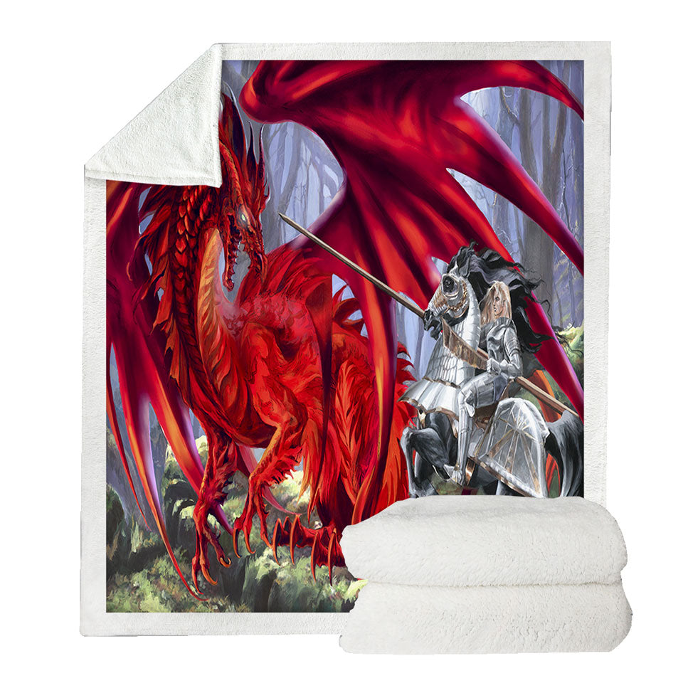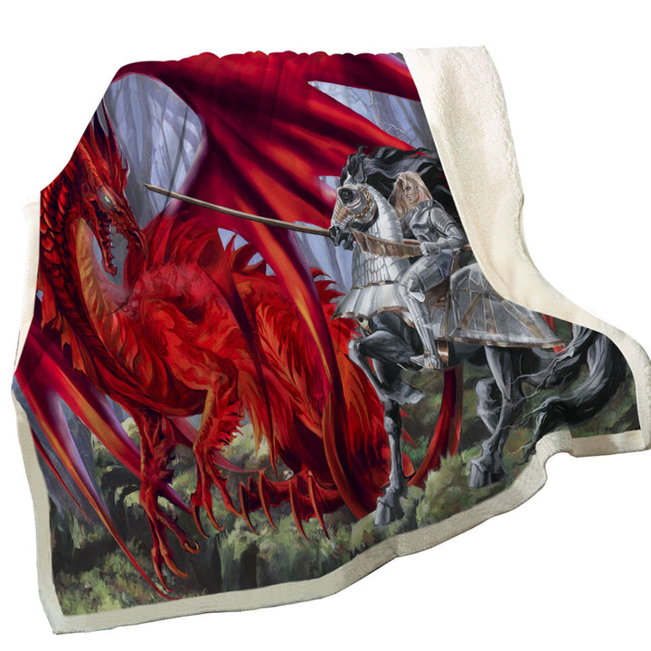 Fantasy Art Blood Lust Knight vs Red Dragon Throw Blanket