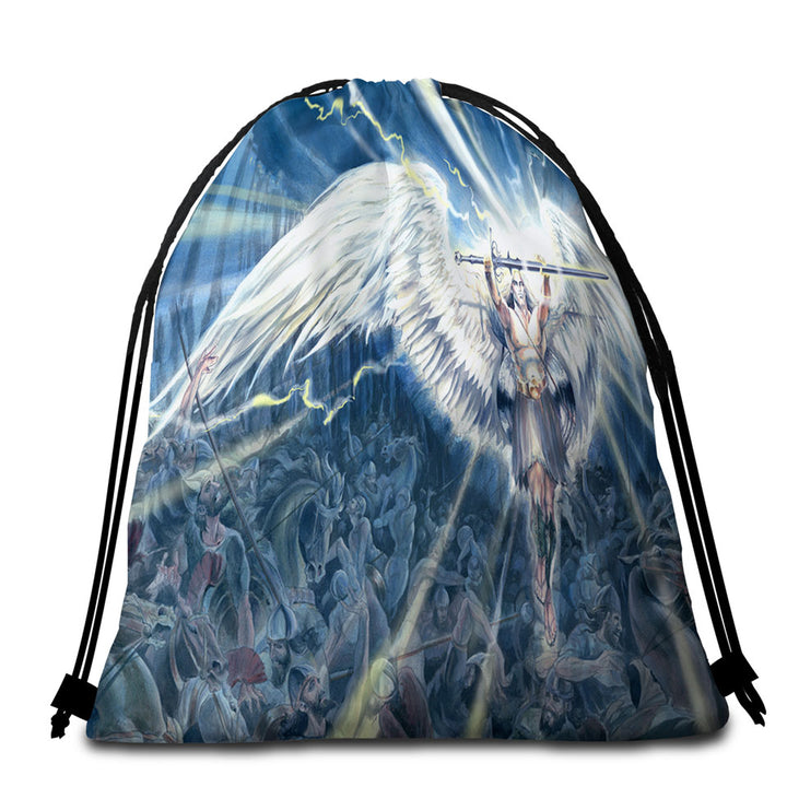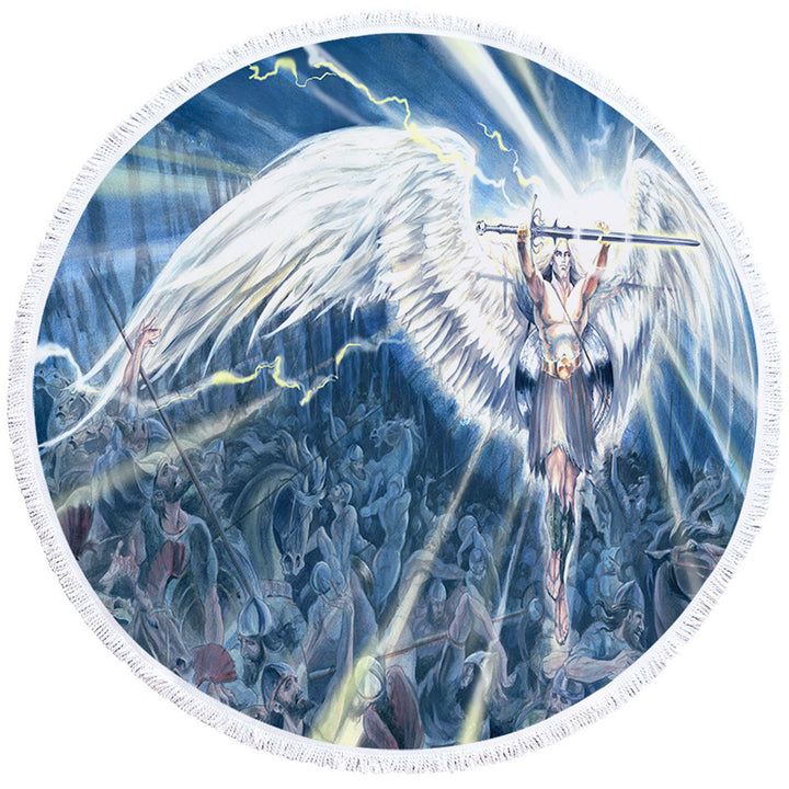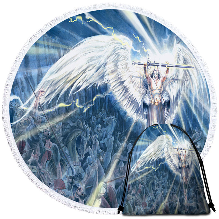 Knight Angel Michael vs Assyrians Round Beach Towel