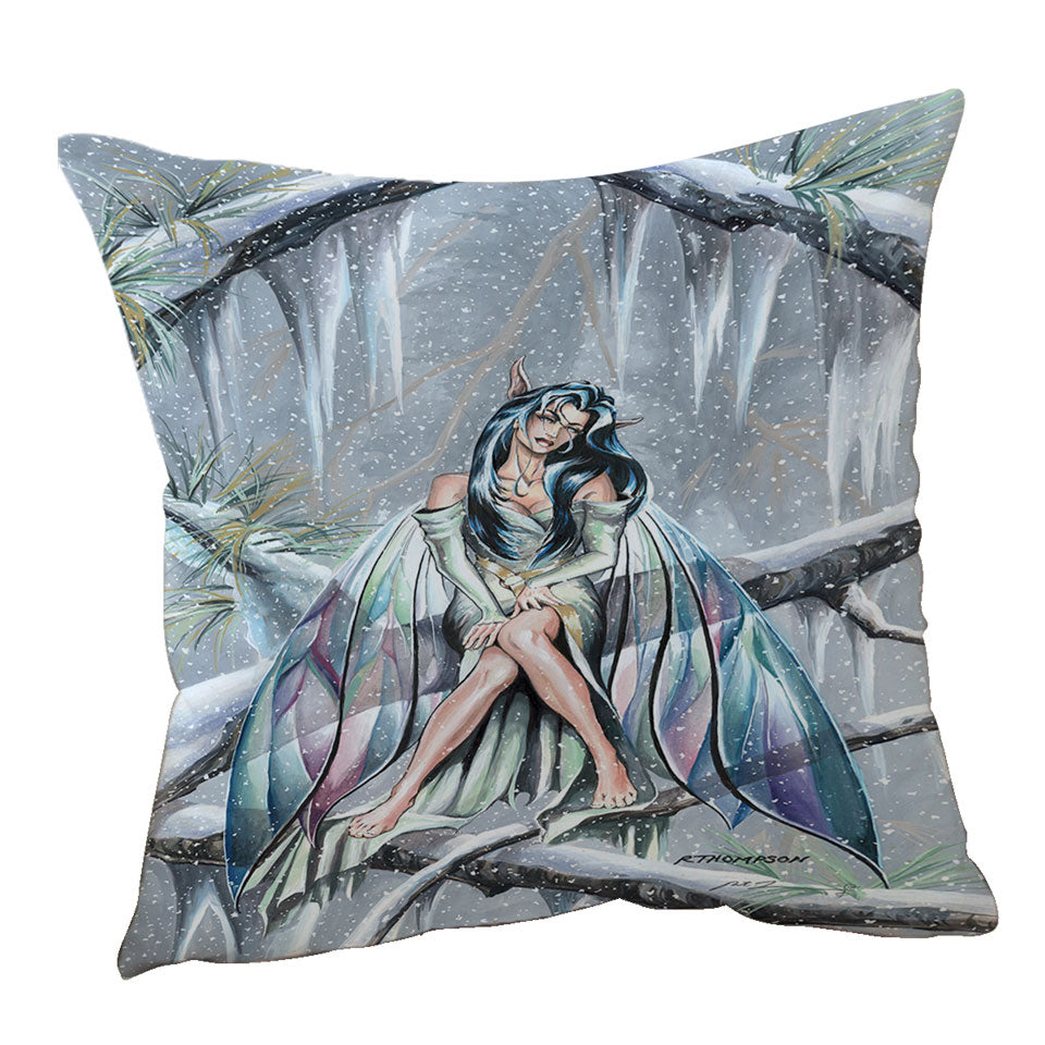 Midwinters Dream Snowy Forest Fairy Throw Pillow