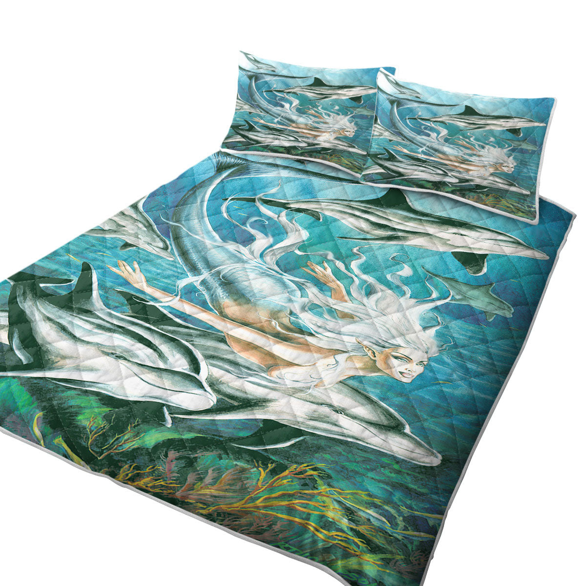 Sirens Mythology Art Dolphins and Mermaid Quilt