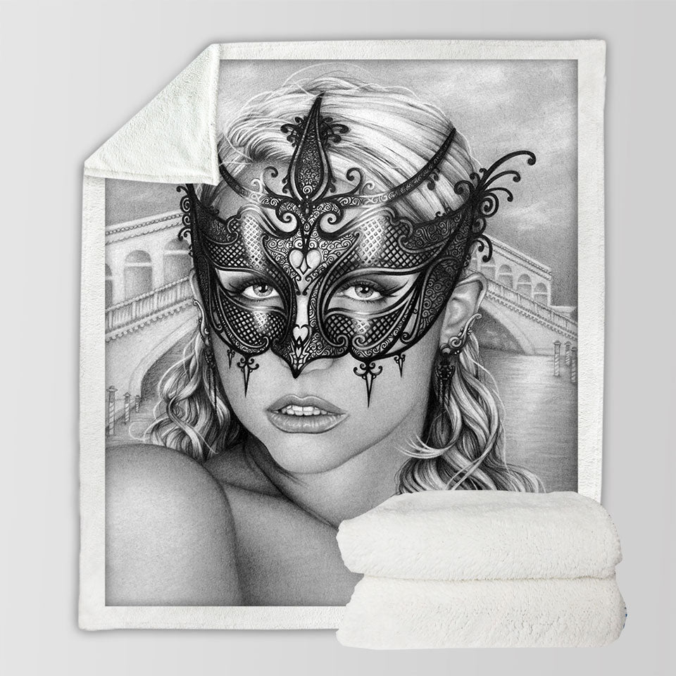 Artistic Pencil Drawing Venice Masked Woman Throw Blanket