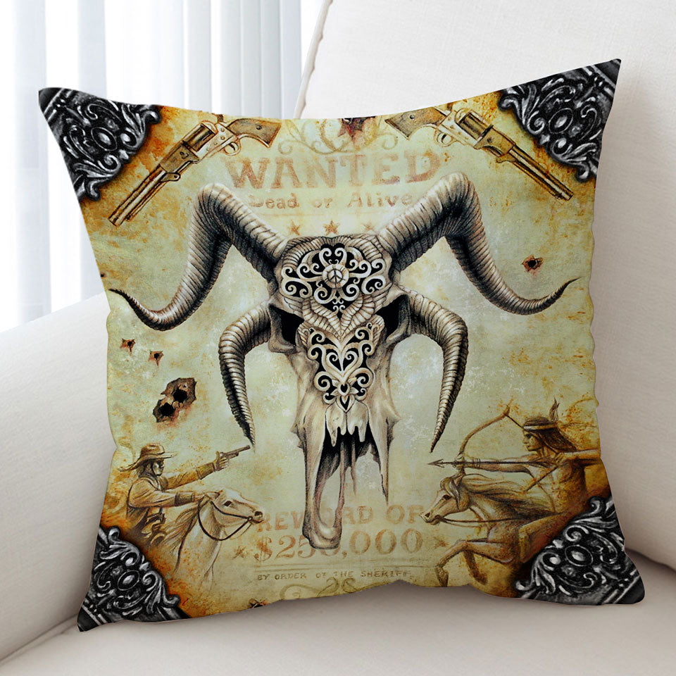 Cool Old Wild West Wanted Goat Skull Throw Pillow