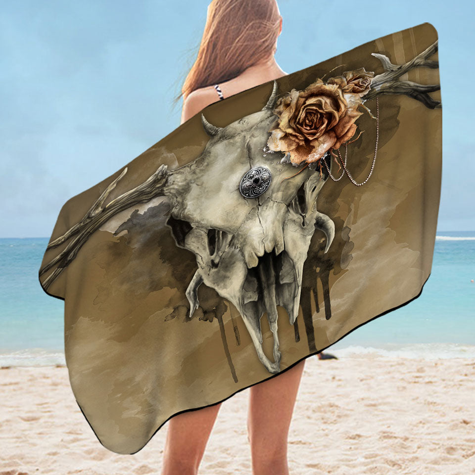 Dark Artwork All Shall Fade Rosy Deer Skull Microfiber Beach Towel