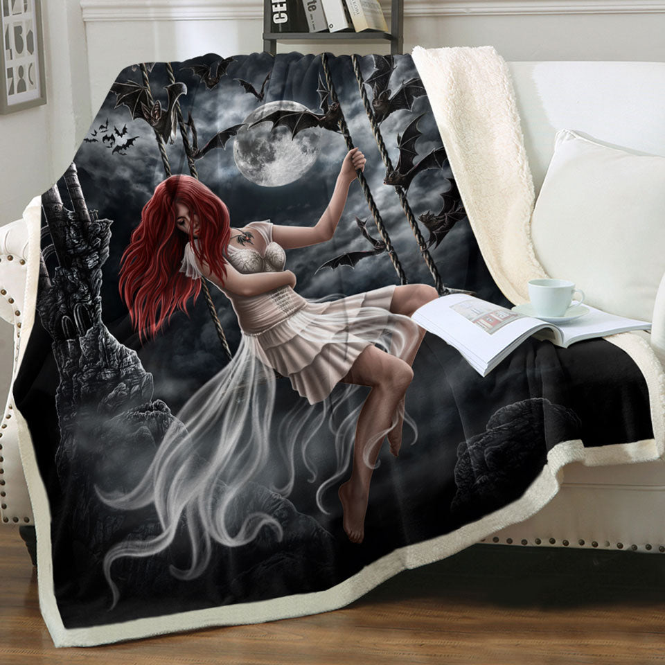 Gothic Night Art Draculas Bride Redhead Girl and Bats Throw Blanket