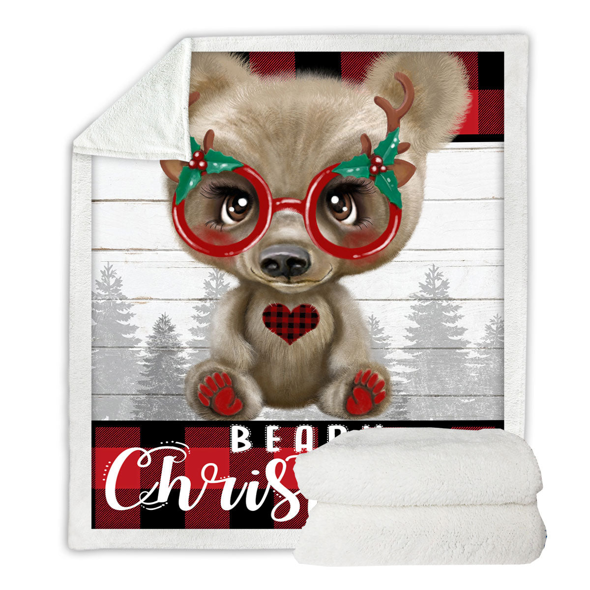 Cute Christmas Bear Beary Christmas Throw Blanket