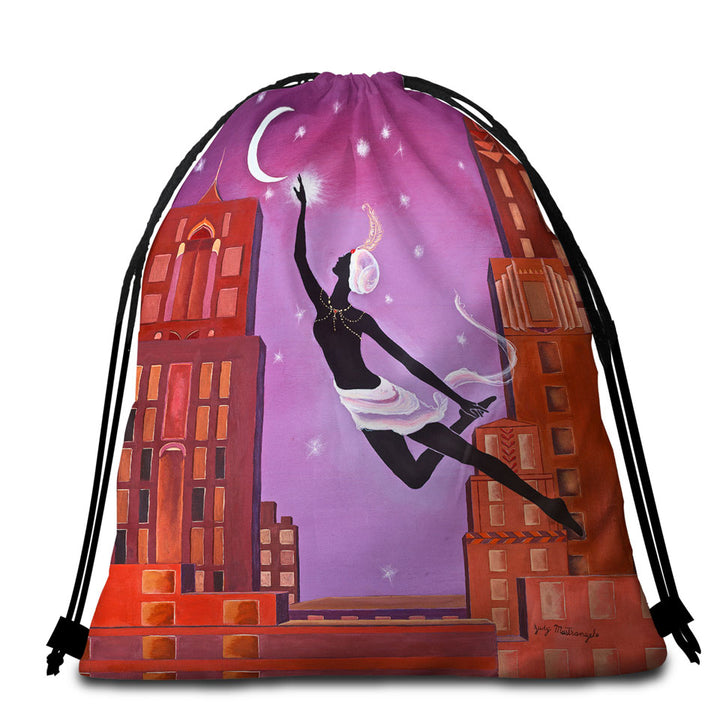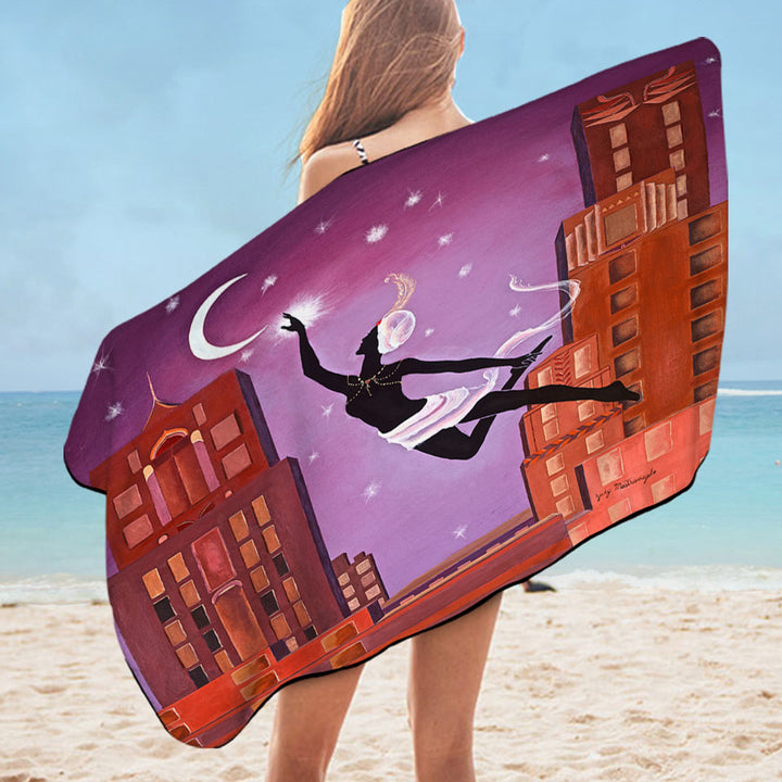 Art Deco Gliding Night City Dancing Painting Microfiber Beach Towel
