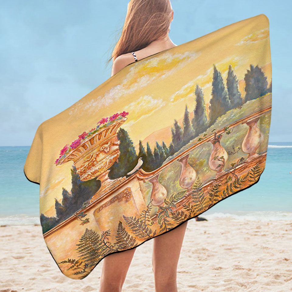 Fine Art Painting Beautiful Terrace Facing the Forest Microfiber Beach Towel