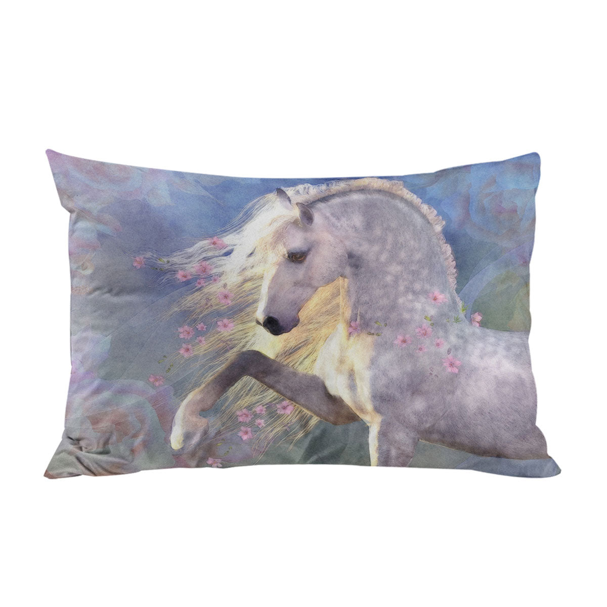 Horse Art Beautiful Pink Flowery White Horse Duvet Cover