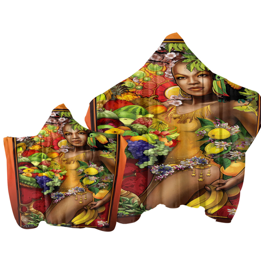 Stunning Black Woman Goddess of Fruit Towel with Hood