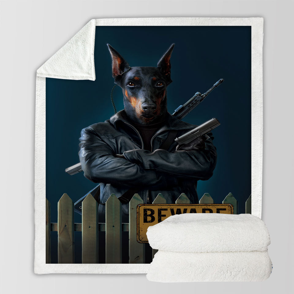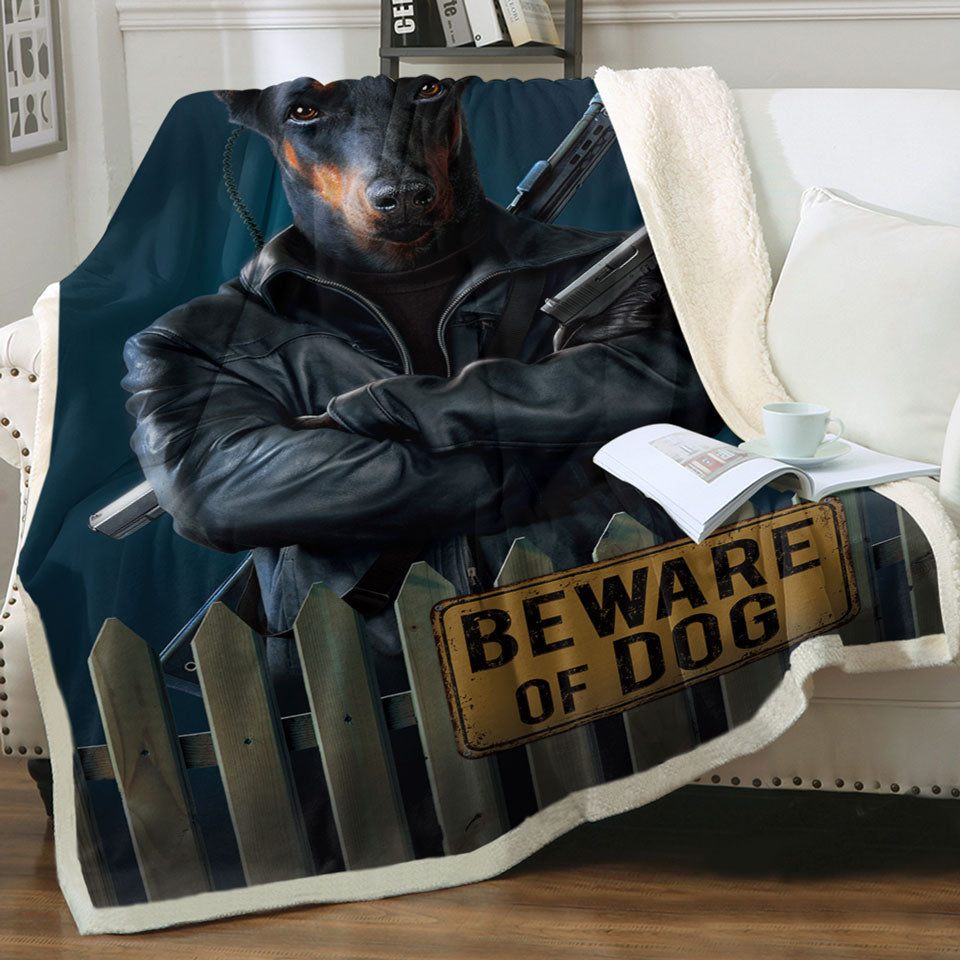 Cool Animal Art Beware of Dog Throw Blanket