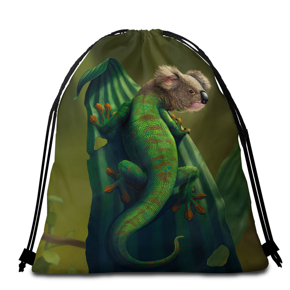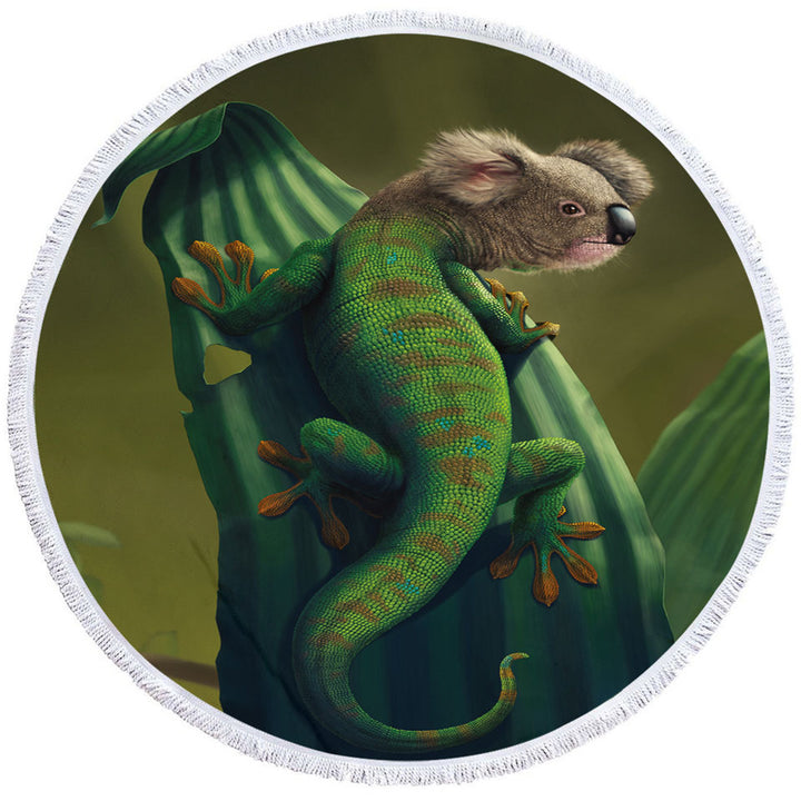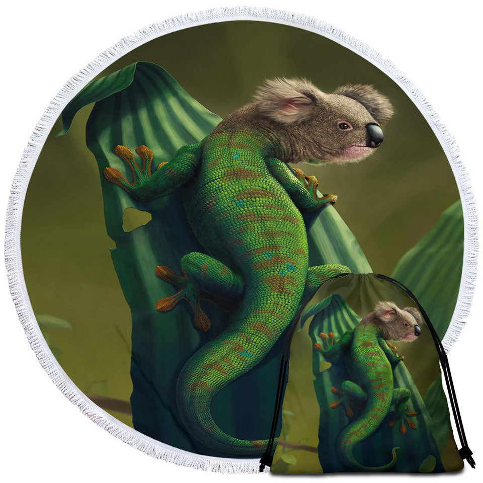 Cool Animal Art Gekoala Iguana and Koala Round Beach Towel